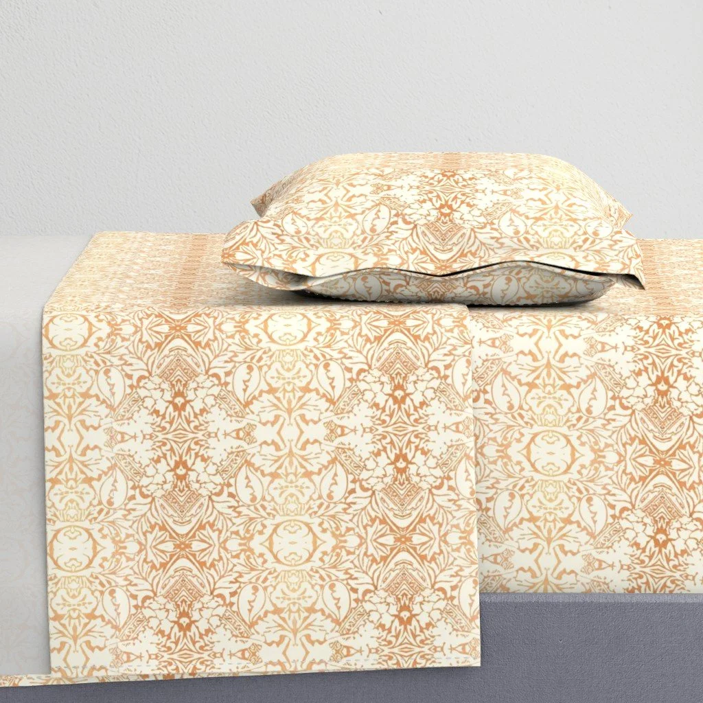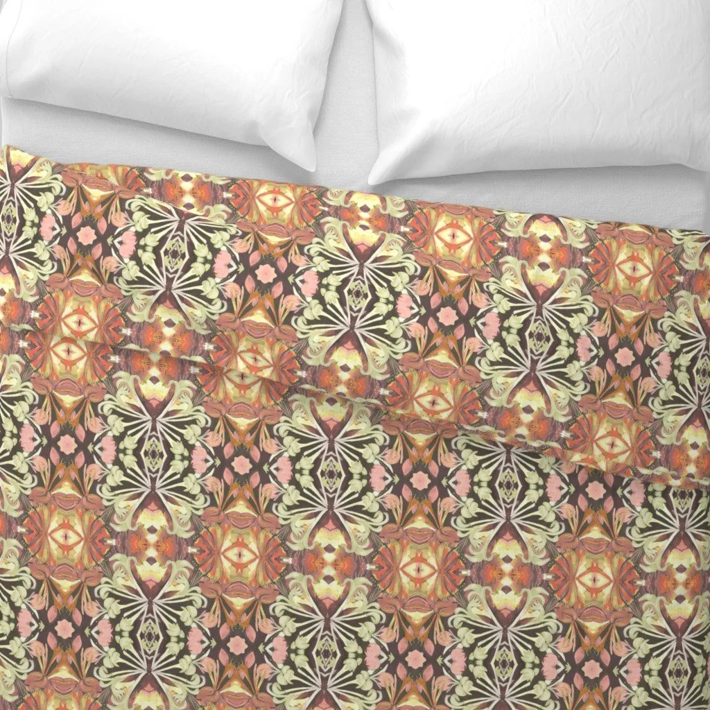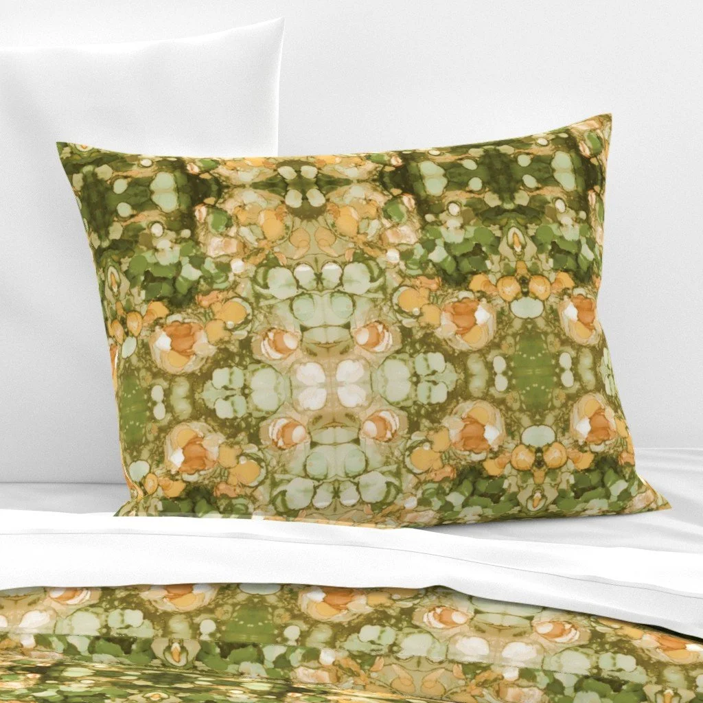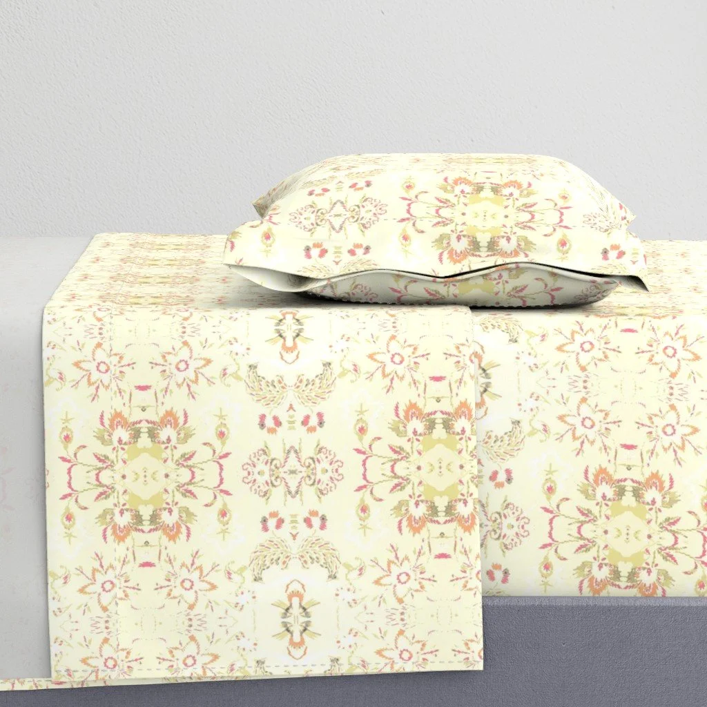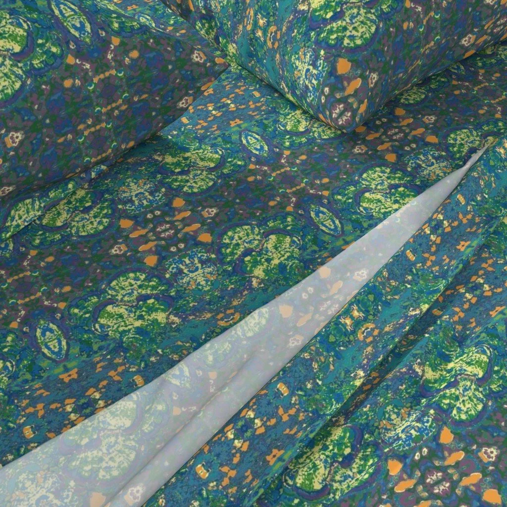 All of the fabrics & wallpapers are designed by Moondance Farm Studios founder, Amy Masterman. She creates original artwork in a variety of media as the starting point, and then manipulates it in various ways to transform it into a whole new design. A few of the patterns are collaborations with other Moondance artists.