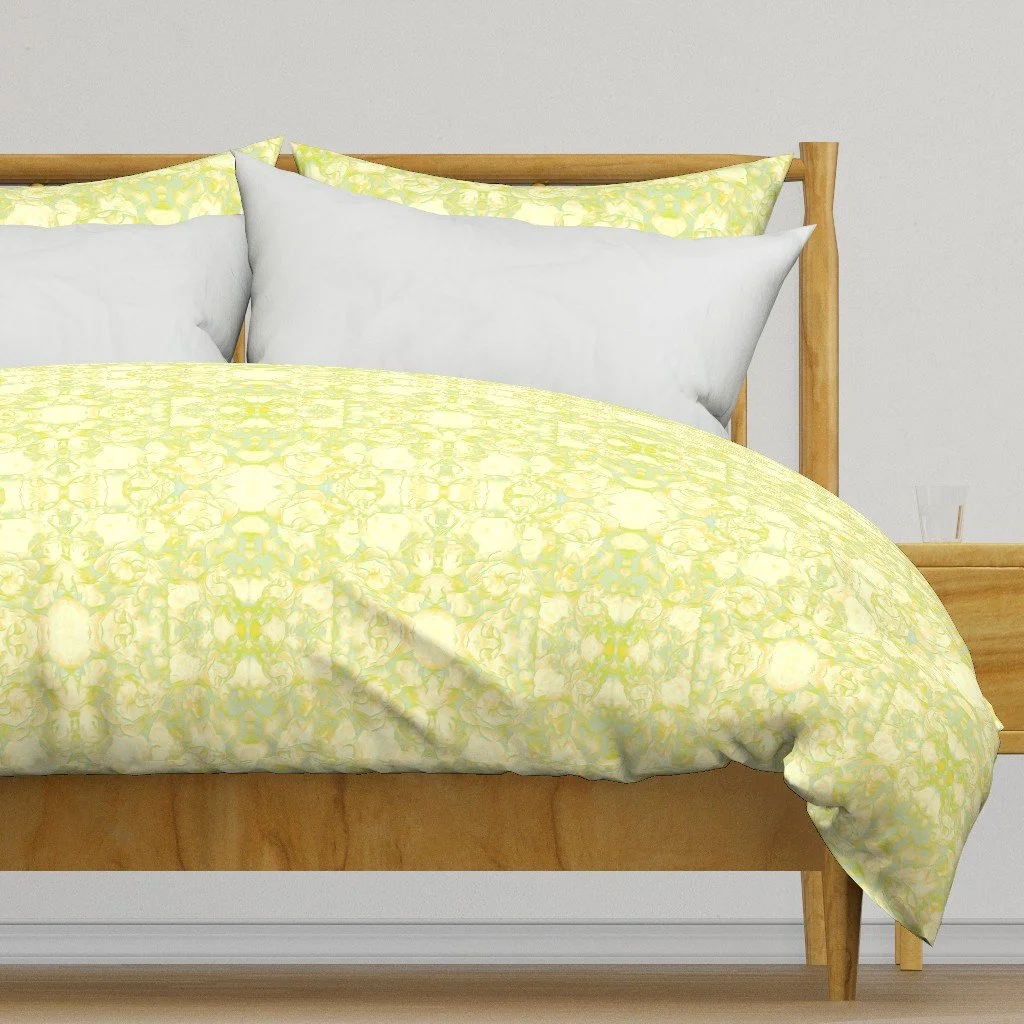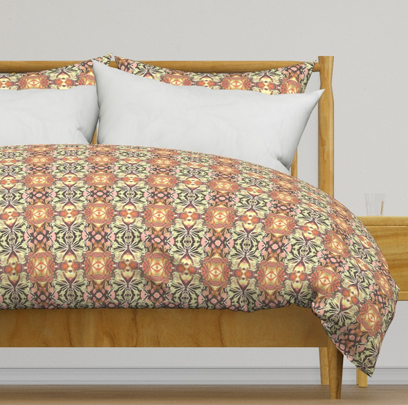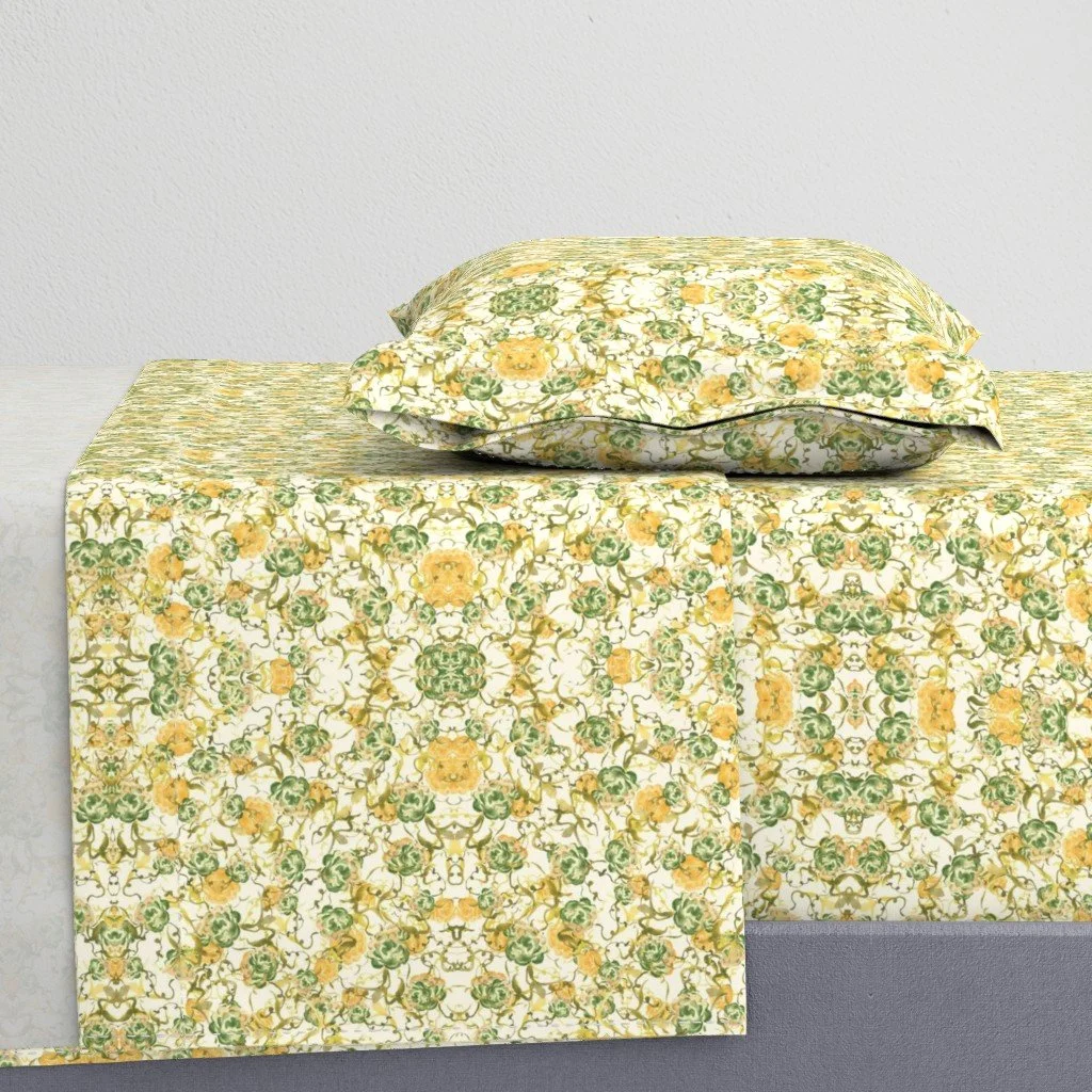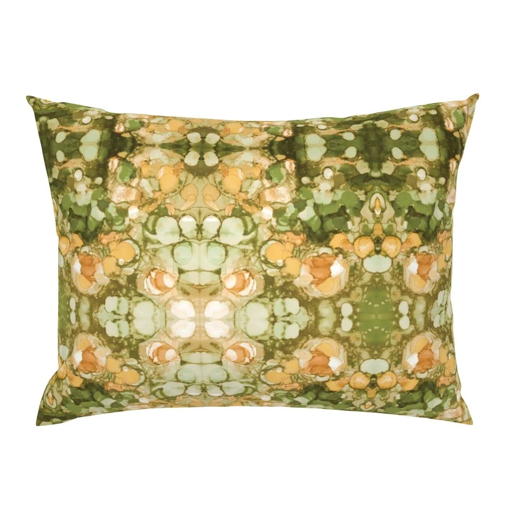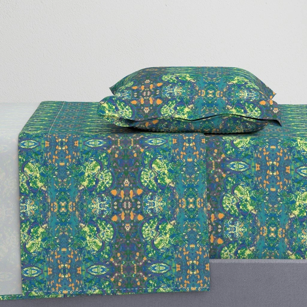 All of the fabrics & wallpapers are designed by Moondance Farm Studios founder, Amy Masterman. She creates original artwork in a variety of media as the starting point, and then manipulates it in various ways to transform it into a whole new design. A few of the patterns are collaborations with other Moondance artists.
