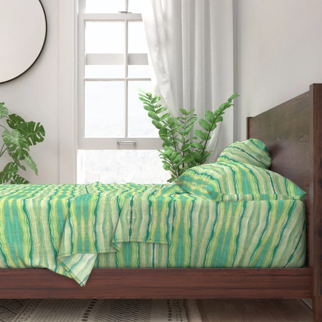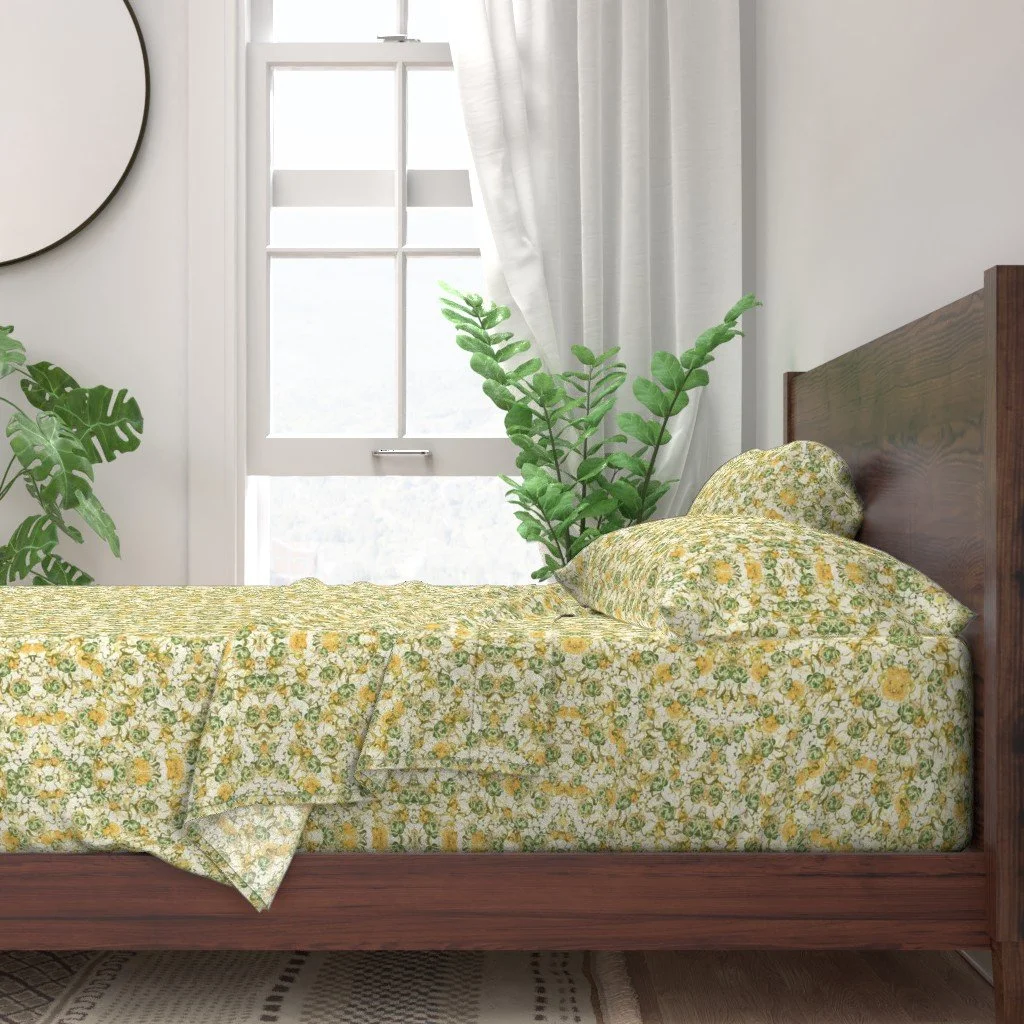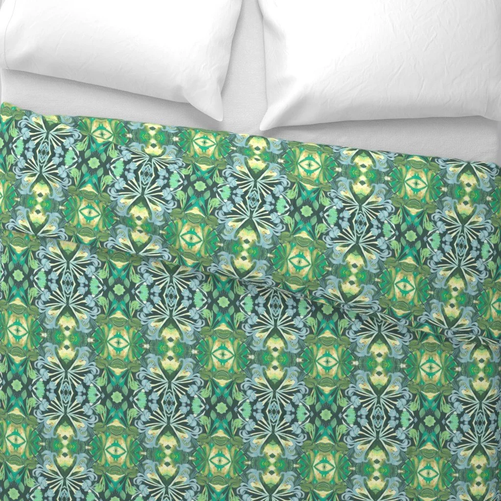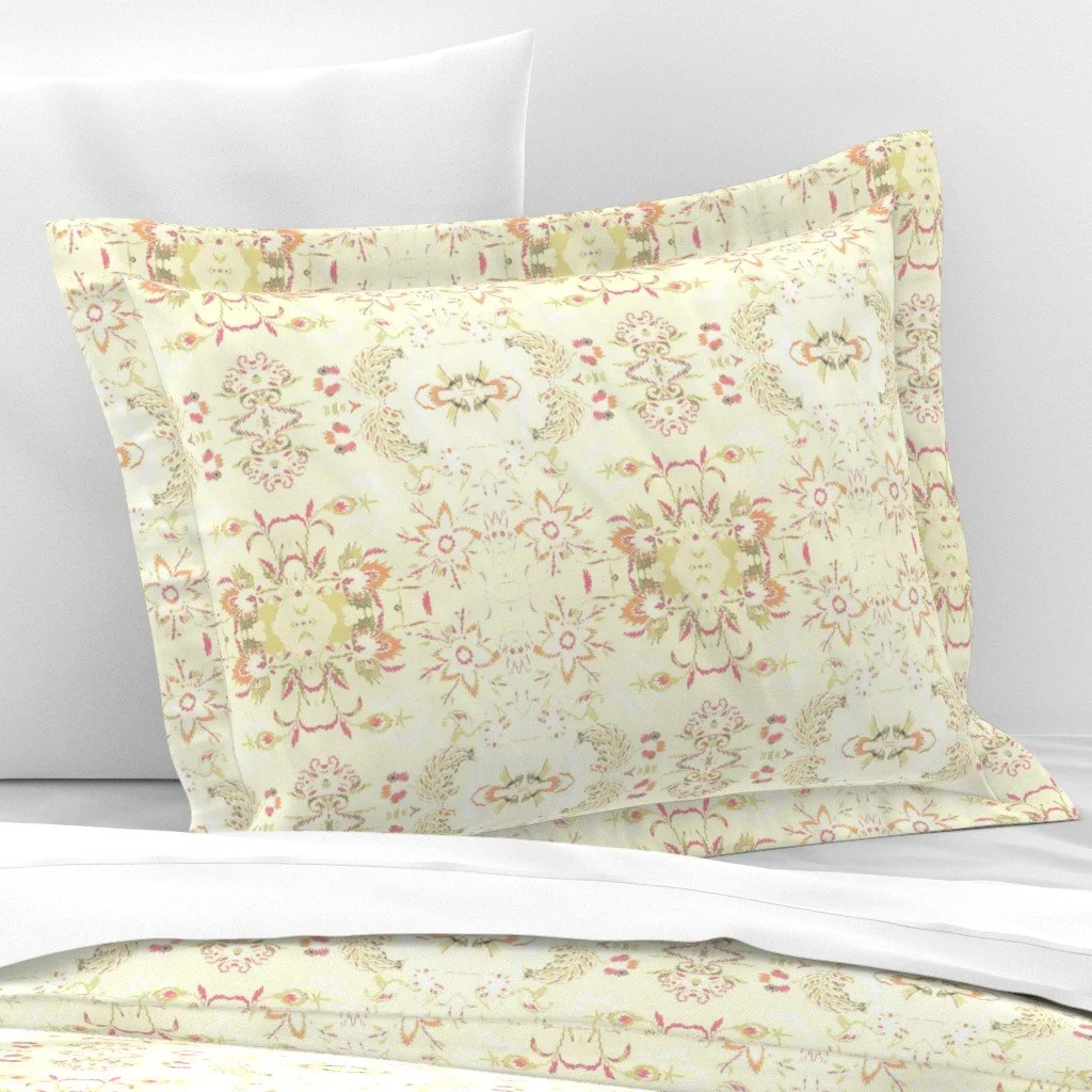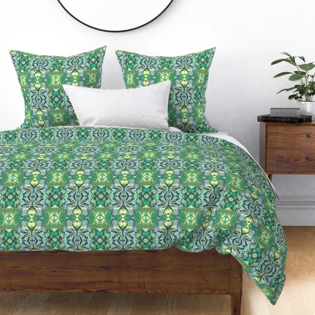 All of the fabrics & wallpapers are designed by Moondance Farm Studios founder, Amy Masterman. She creates original artwork in a variety of media as the starting point, and then manipulates it in various ways to transform it into a whole new design. A few of the patterns are collaborations with other Moondance artists.