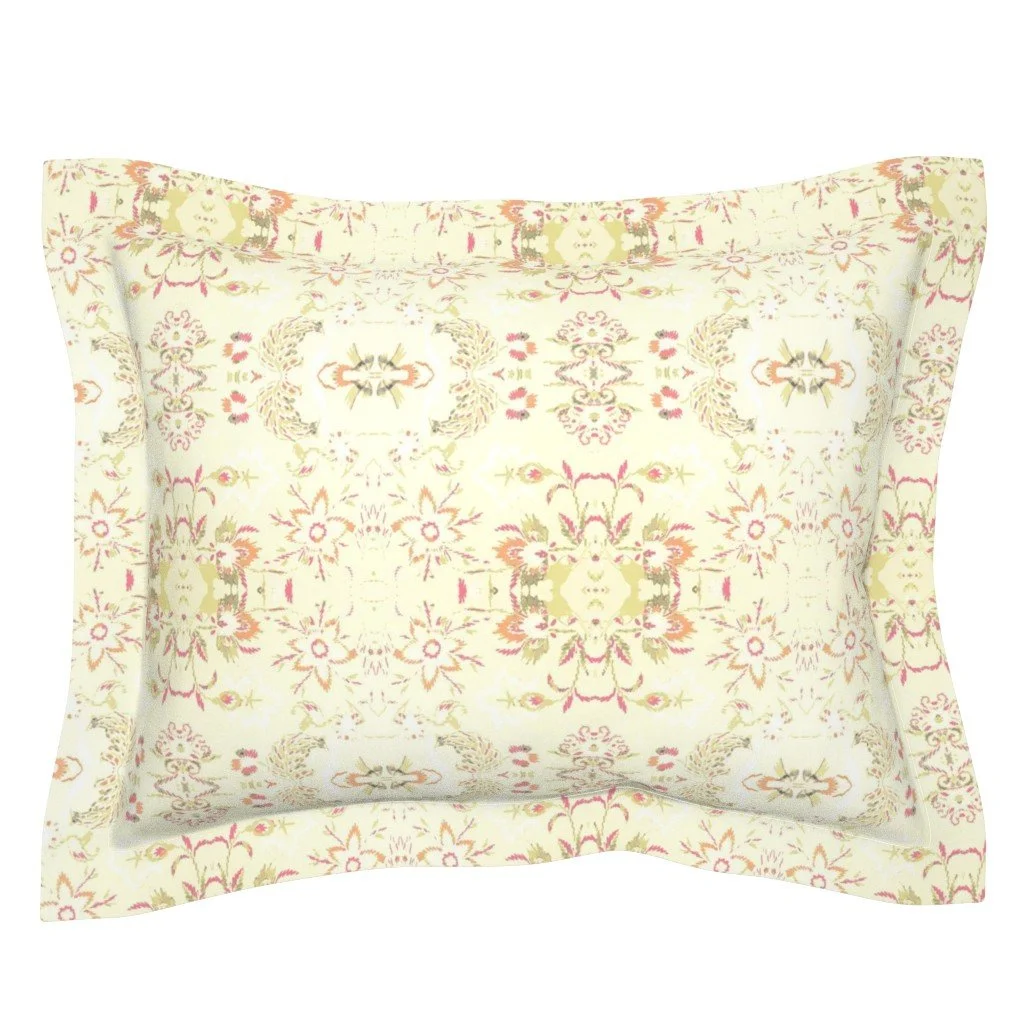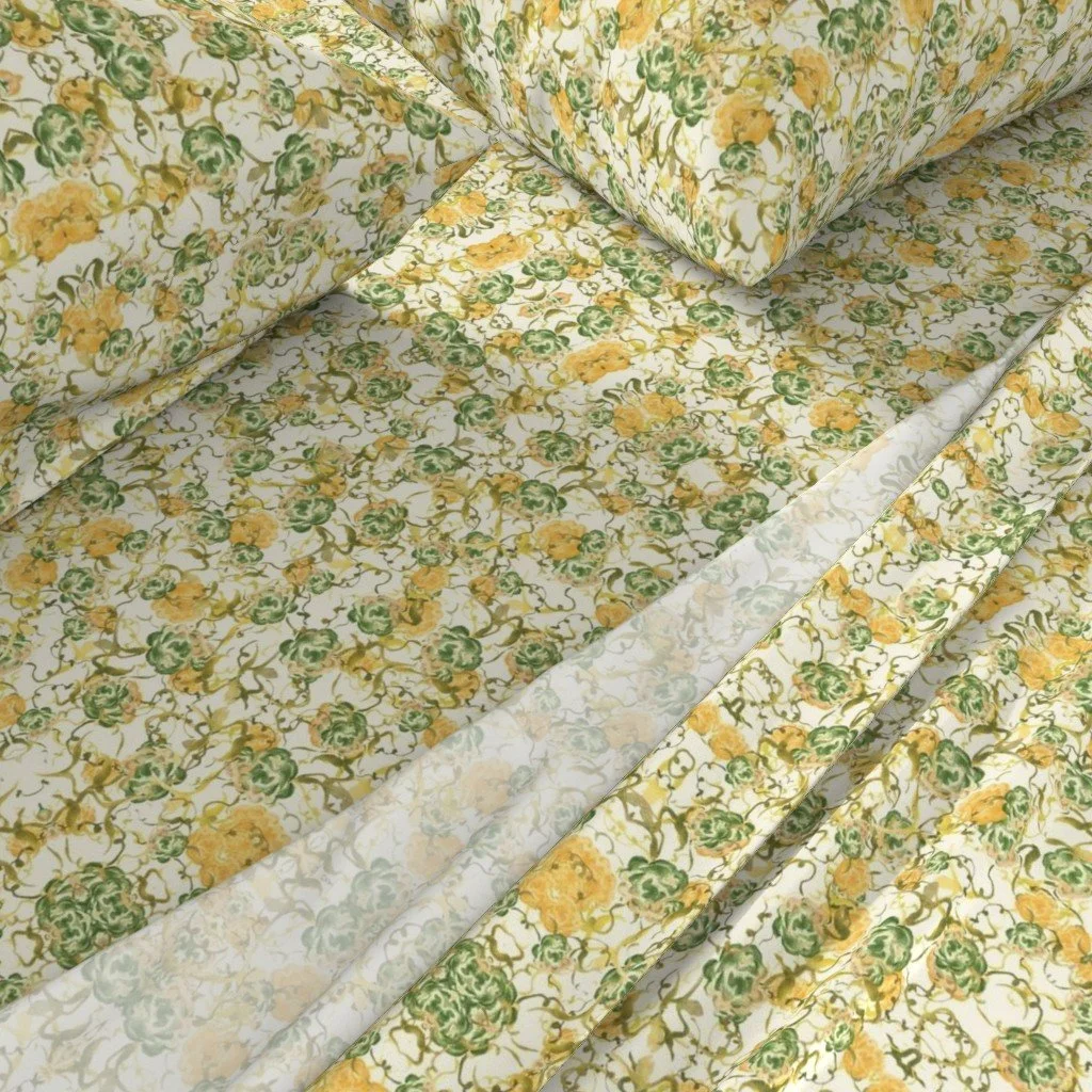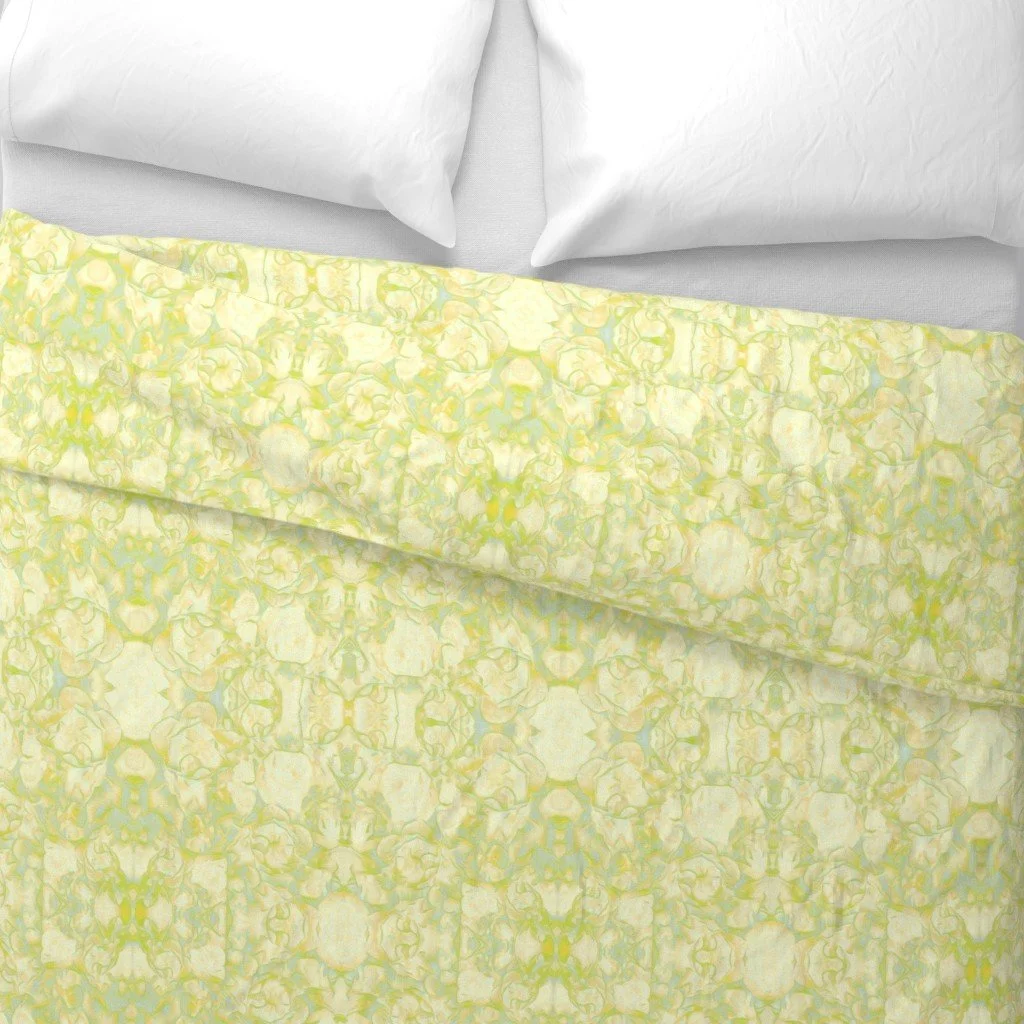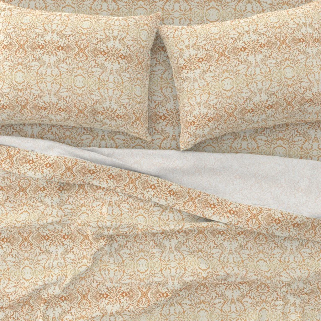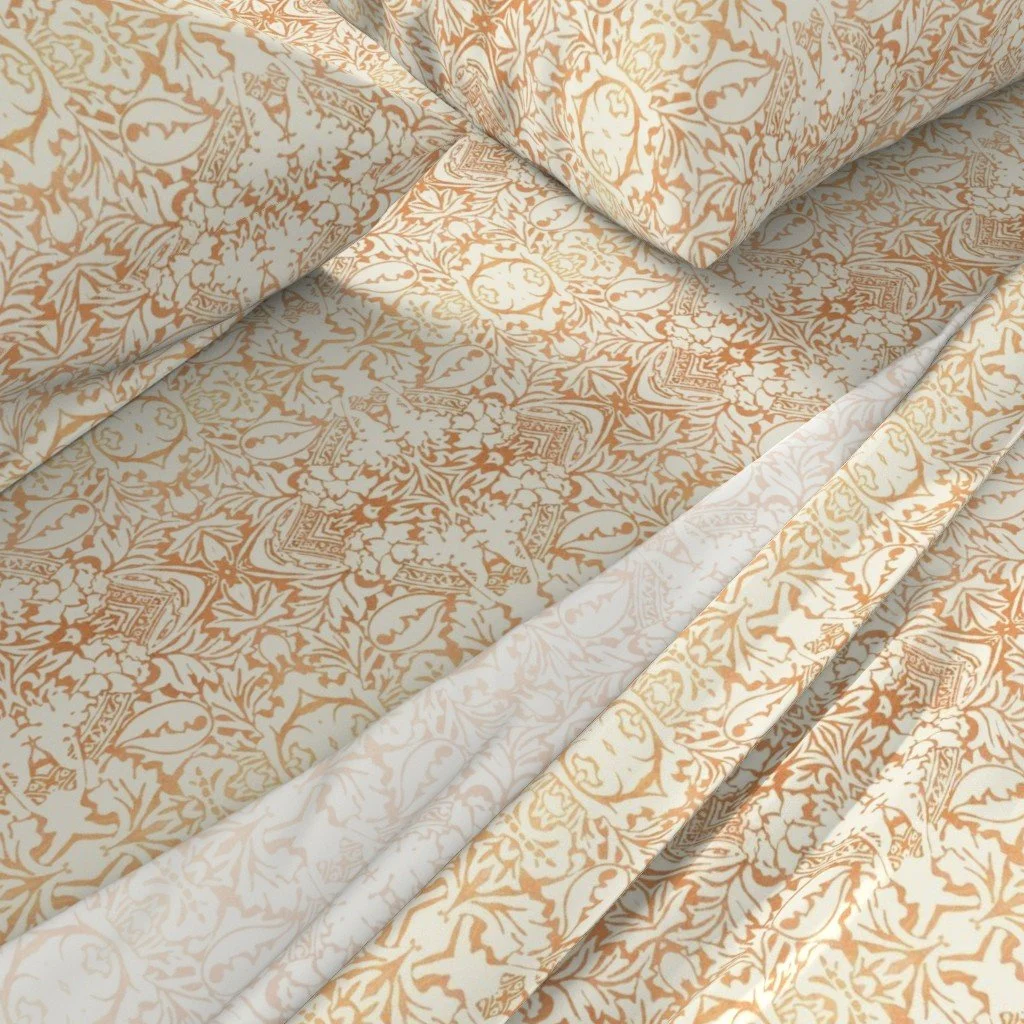 All of the fabrics & wallpapers are designed by Moondance Farm Studios founder, Amy Masterman. She creates original artwork in a variety of media as the starting point, and then manipulates it in various ways to transform it into a whole new design. A few of the patterns are collaborations with other Moondance artists.