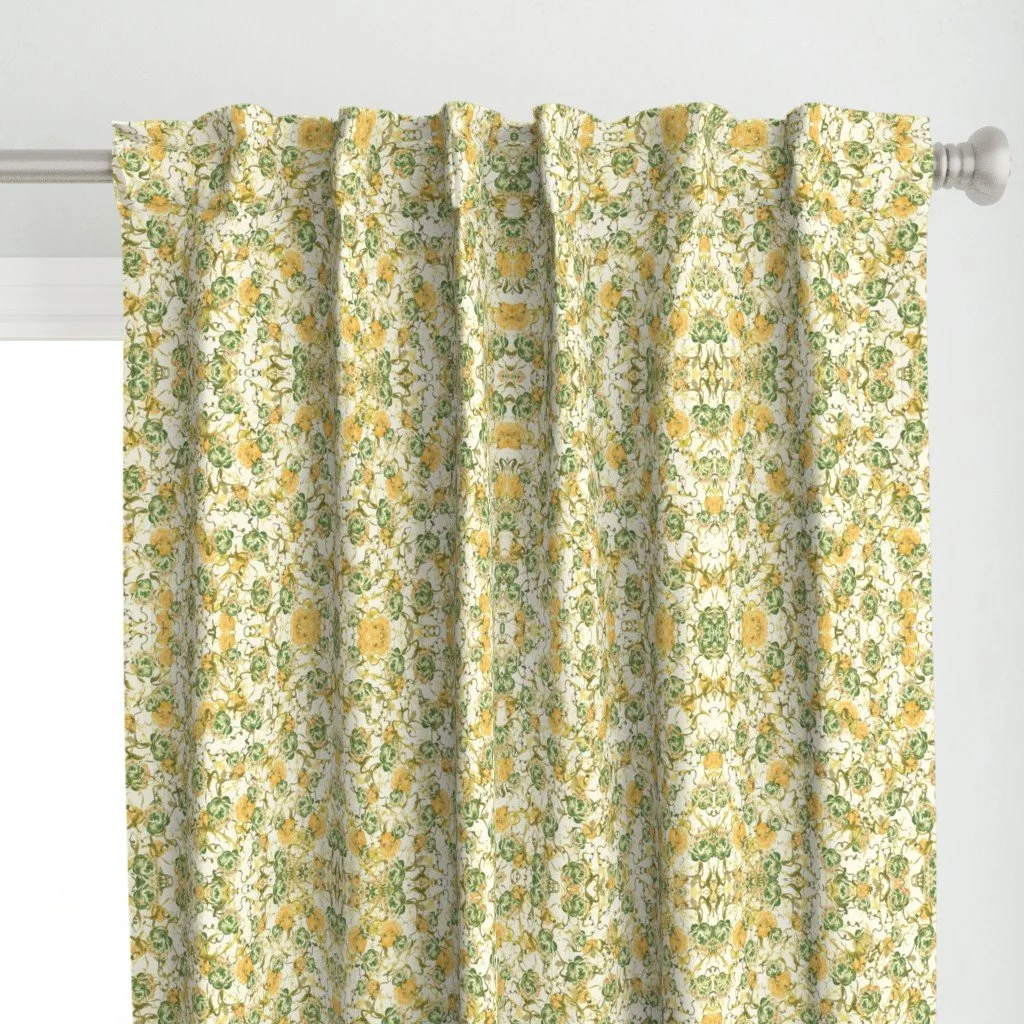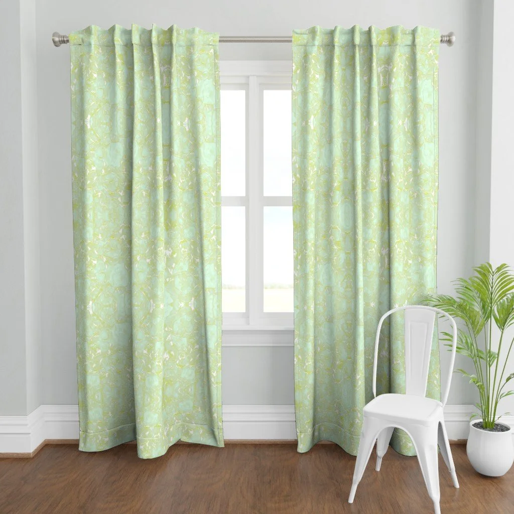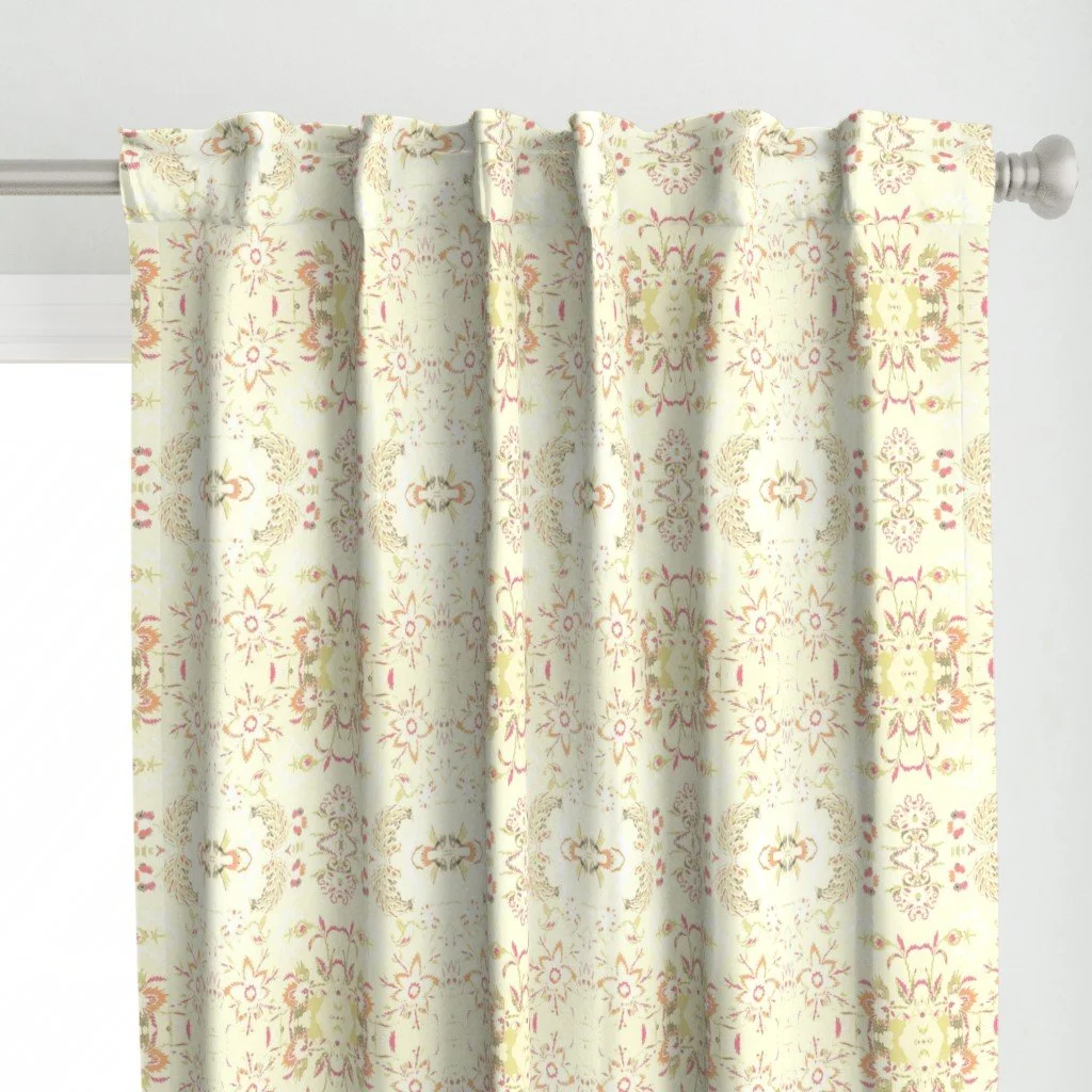 All of the fabrics & wallpapers are designed by Moondance Farm Studios founder, Amy Masterman. She creates original artwork in a variety of media as the starting point, and then manipulates it in various ways to transform it into a whole new design. A few of the patterns are collaborations with other Moondance artists.